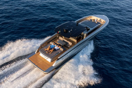 CANADOS 493 GLADIATOR GRAND disponible pour 2022. Classique et moderne à la fois, des matériaux prestigieux. Ce modèle "DAY-BOAT CHIC" est idéal pour une journée en mer avec vos amis.