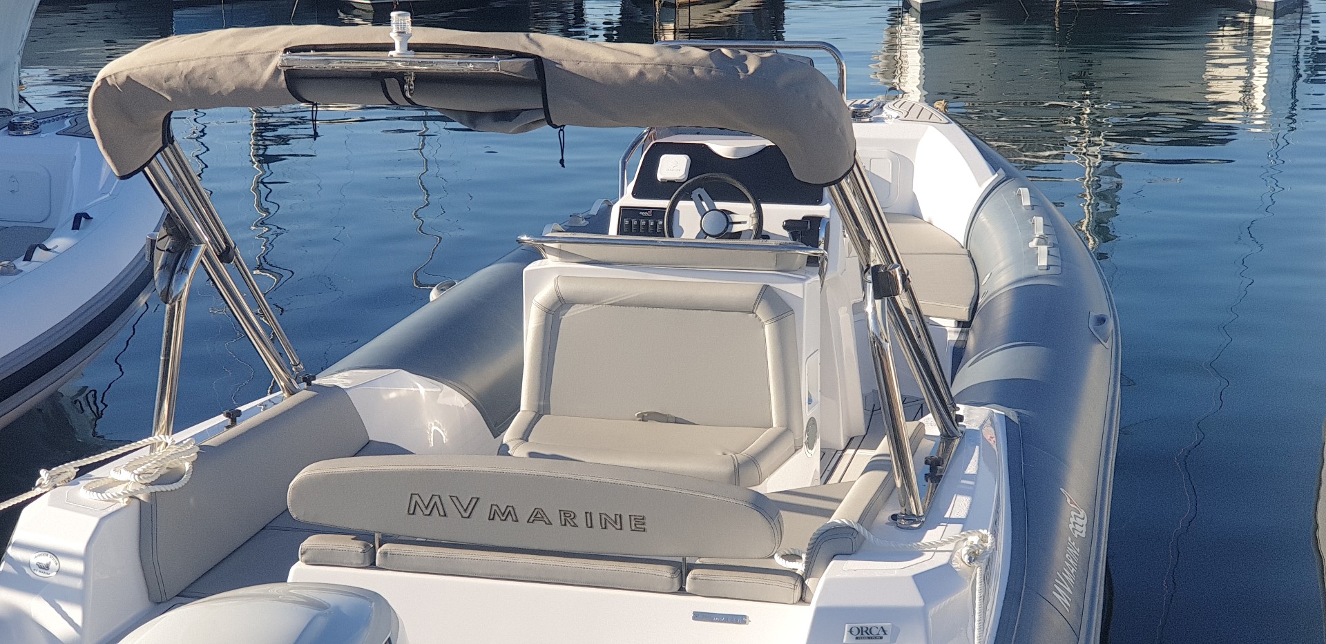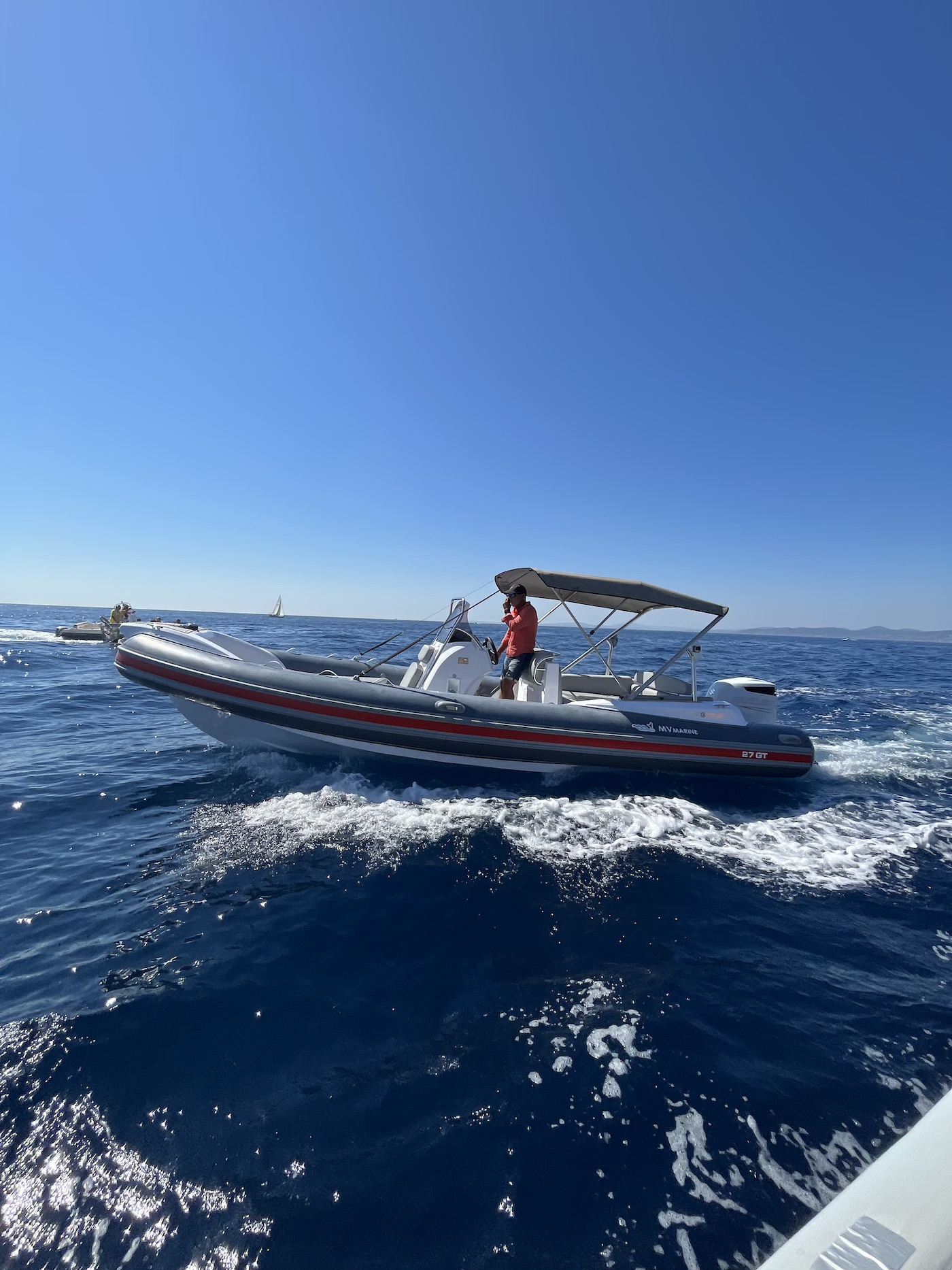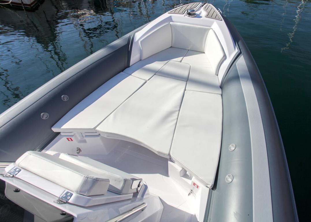 The MV Marine 27 GT is a high-end RIB (rigid inflatable boat) combining elegance, performance, and comfort. Thanks to its powerful engine and hull optimized for cutting through waves, it offers a stable and enjoyable ride, perfect for exploring the Gulf of Saint-Tropez. Enjoy relaxing and discovering the region with its large sun deck.