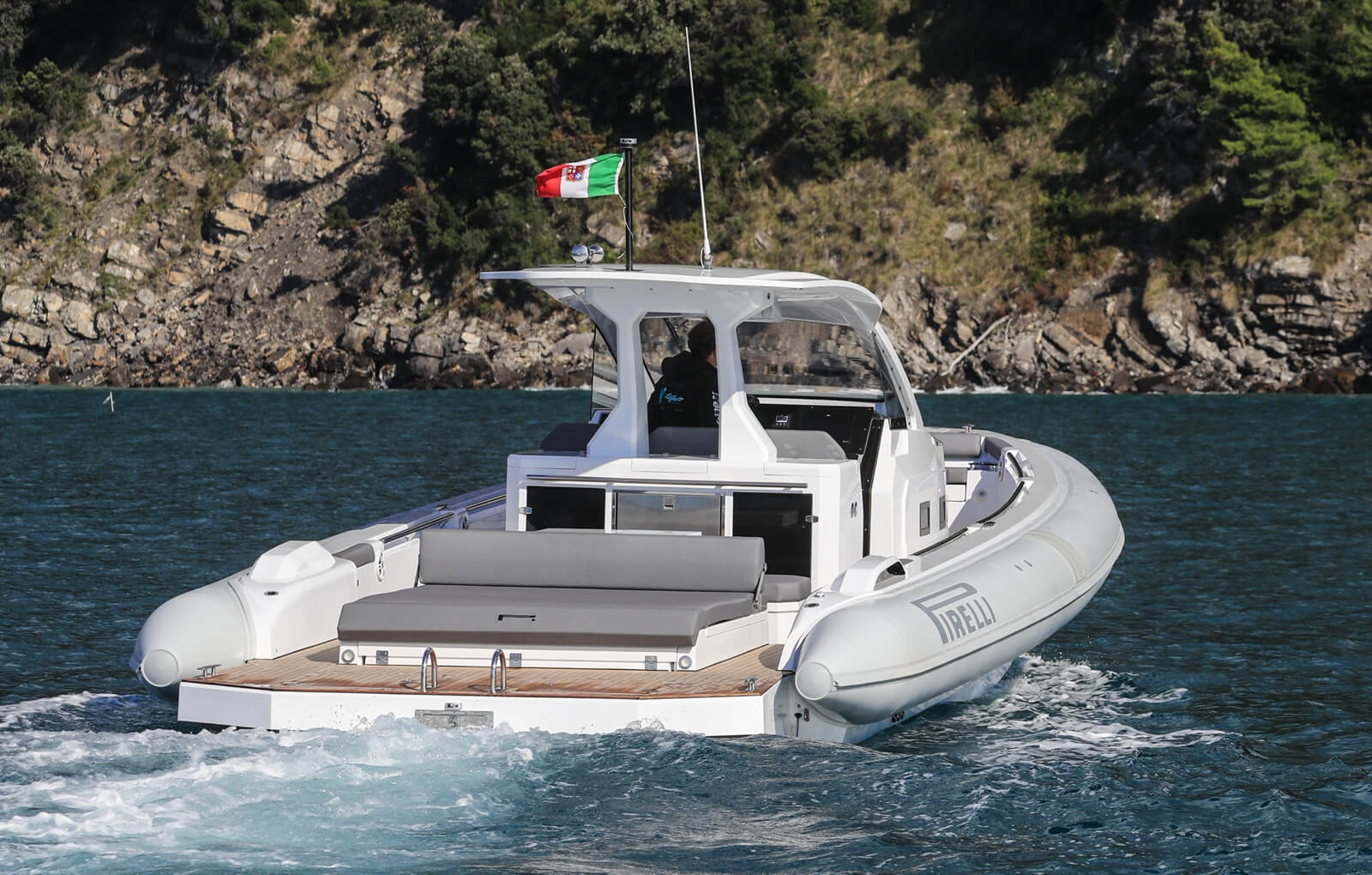 Cruise in style and performance across the sparkling waters of the Gulf of Saint-Tropez aboard the Pirelli 42, a day boat that combines luxury, comfort, and thrilling sensations. With its sleek Italian design, spacious deck, and powerful engines, this premium semi-rigid boat is perfect for an unforgettable day at sea.